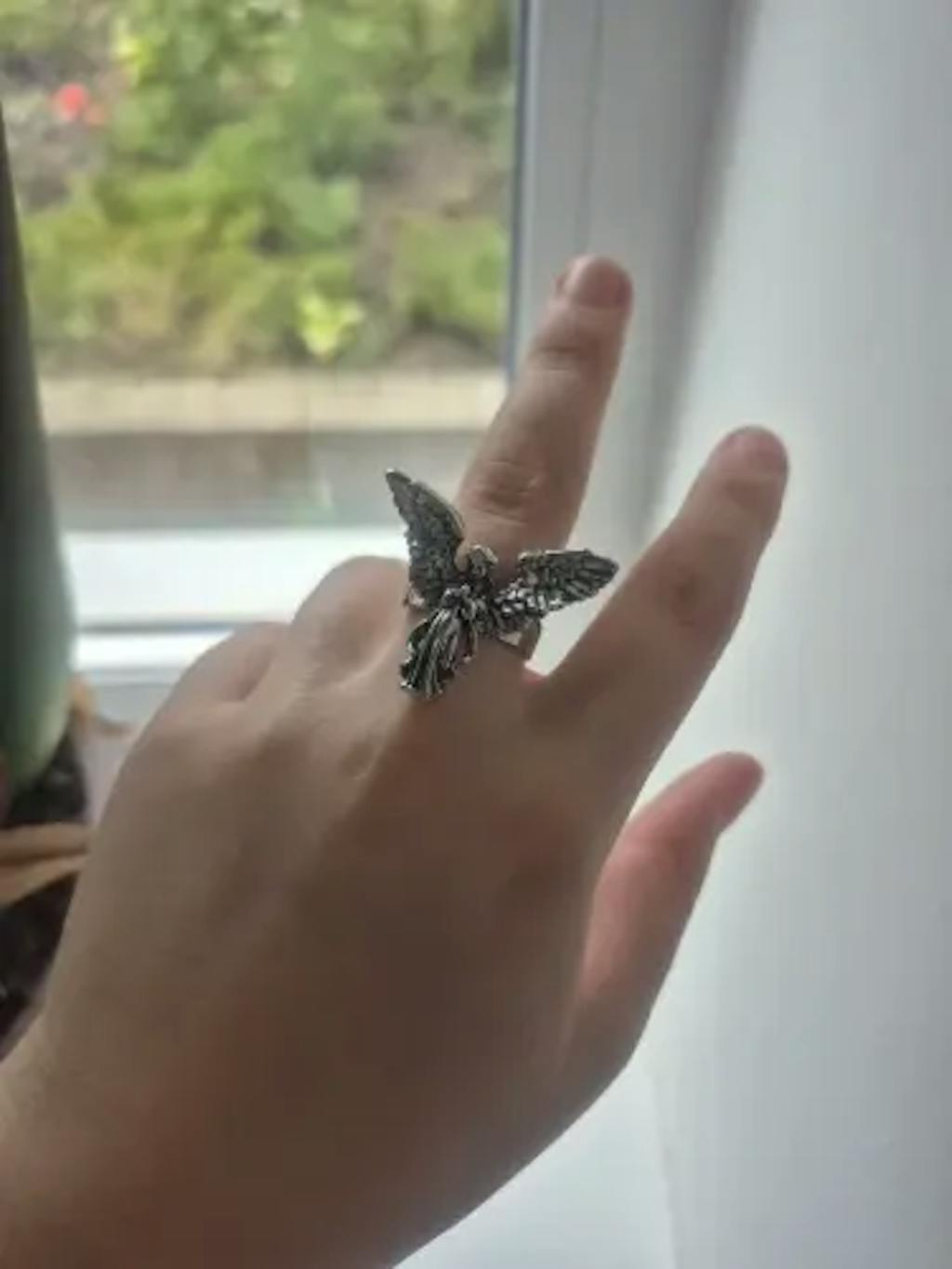 Embrace timeless edge and mystery — wear the Distressed Angel Ring and make your look unforgettable!